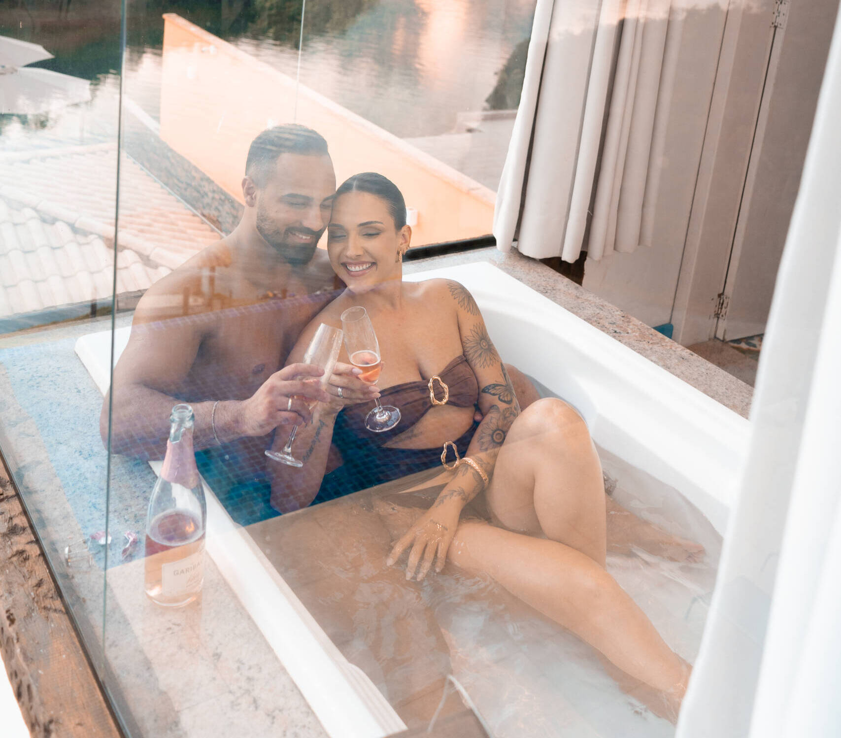 Desfrute de hidromassagem privativa nos chalés, perfeita para aliviar o estresse e proporcionar um relaxamento total.